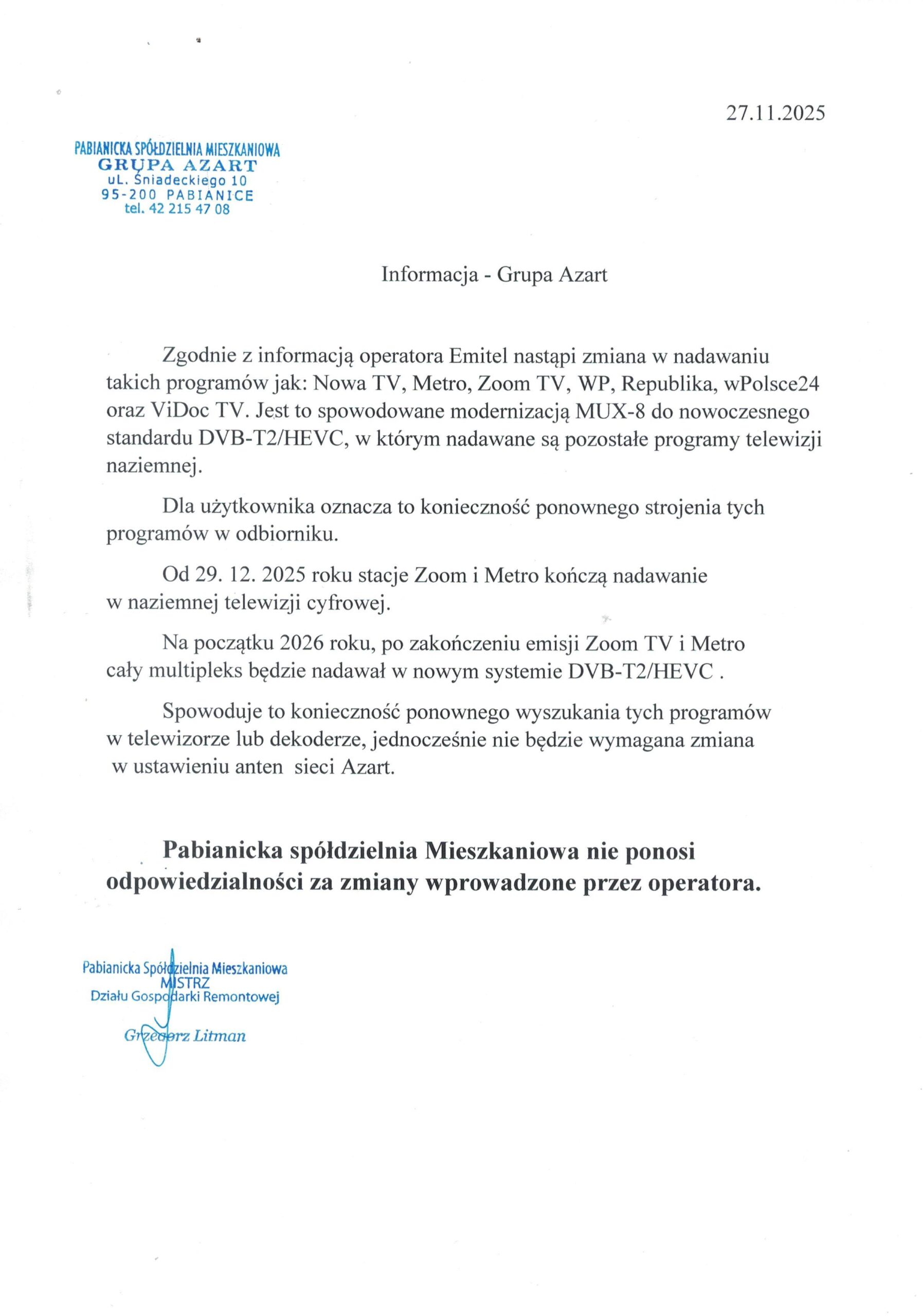 Prace serwisowe w dniu 04.12.2023 (poniedziałek)