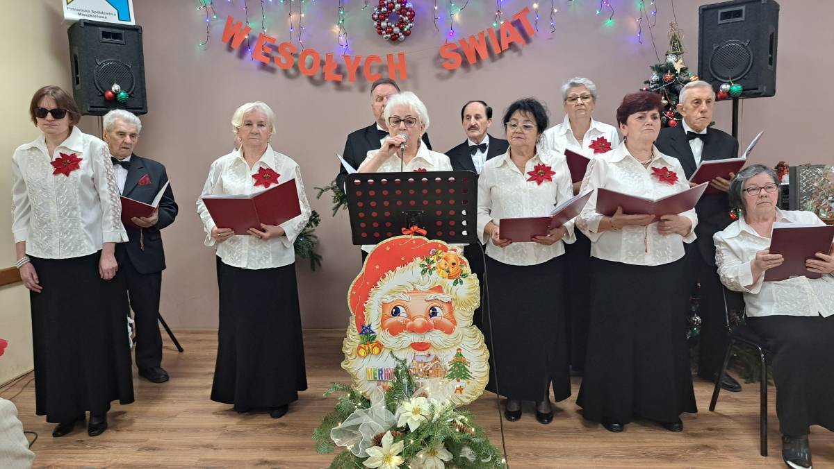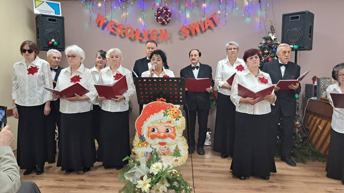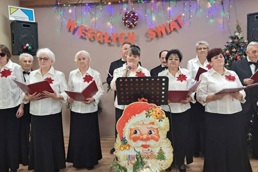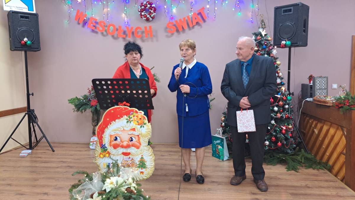 W domu kultury „Barak” w dniu 11.12.2025 odbyła się uroczysta wigilia. Na spotkanie bożonarodzeniowe Klub Seniora „Jarzębina” stawił się w komplecie. Możliwość wspólnego kolędowania oraz złożenia sobie życzeń wnosi wiele optymizmu, radości i nadziei w życie seniorów. Zespół „Jarzębinki” wykonał kolędy: „Wśród nocnej ciszy”, „Przybieżeli do Betlejem”, „Pójdźmy wszyscy do stajenki” oraz „Mędrcy świata”. Usłyszeliśmy także solowe interpretacje kolęd i pastorałek. Elżbieta Laskowska zaśpiewała „Jest taki dzień”, Henryk Gajda – „Lulajże Jezuniu”, Wanda Bal – „Lulaj Go Matko lulaj”, Małgorzata Poczta – „Skrzypi wóz”, a Jadwiga Supczyńska – „Mizerna cisza”. W spotkaniu uczestniczył Ksiądz Tomasz z parafii Trójcy Przenajświętszej, który przeczył fragment pisma świętego.We wspólnym kolędowaniu wzięła udział publiczność. Zwieńczeniem uroczystości były świąteczne życzenia oraz podzielenie się opłatkiem.