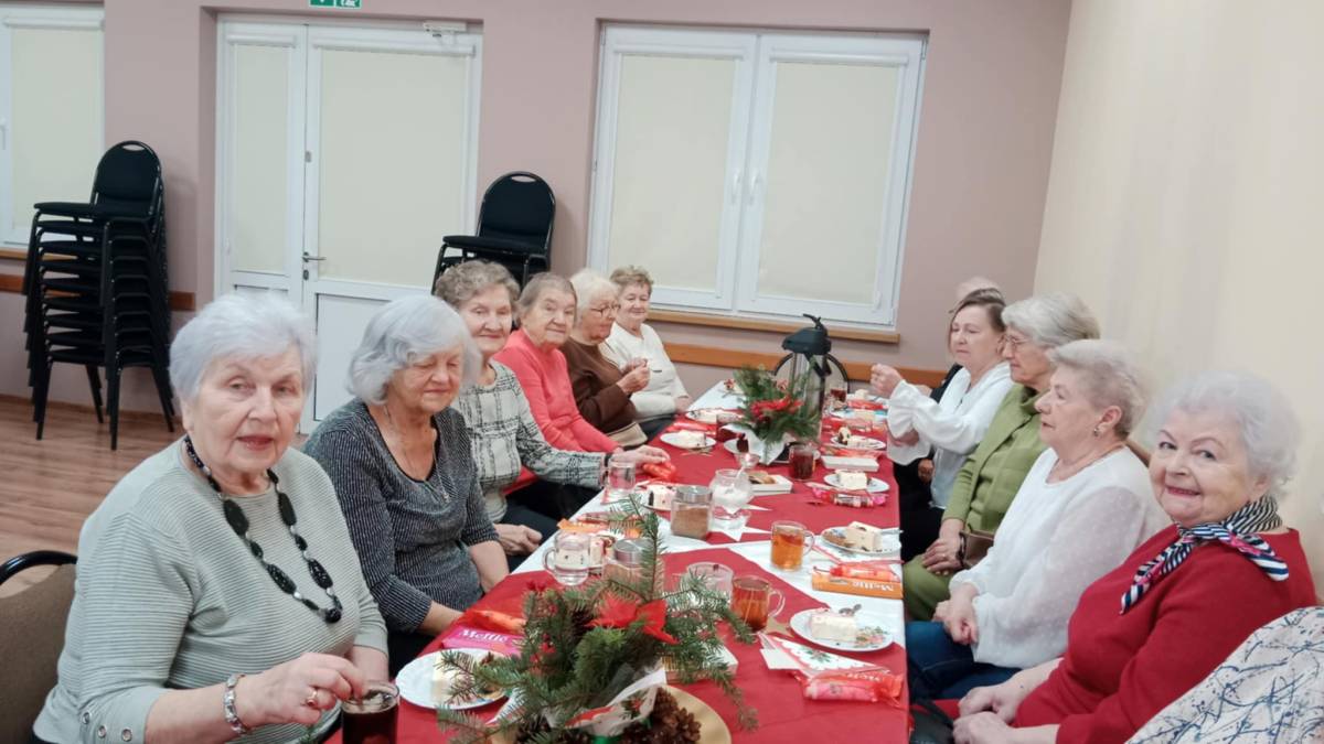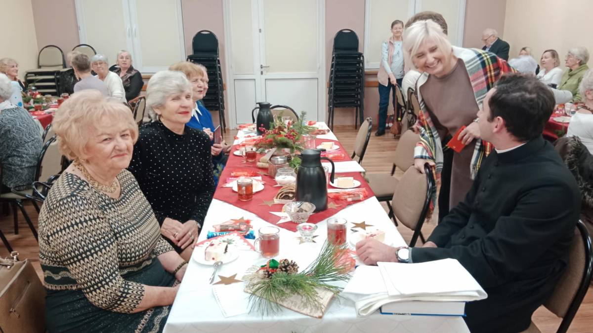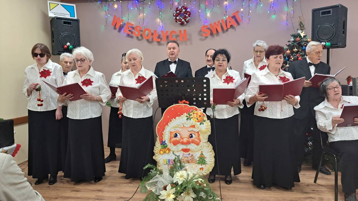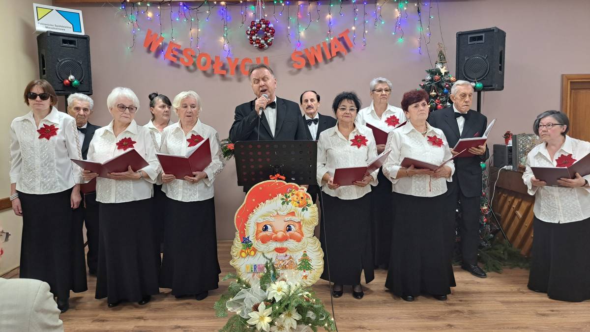 W domu kultury „Barak” w dniu 11.12.2025 odbyła się uroczysta wigilia. Na spotkanie bożonarodzeniowe Klub Seniora „Jarzębina” stawił się w komplecie. Możliwość wspólnego kolędowania oraz złożenia sobie życzeń wnosi wiele optymizmu, radości i nadziei w życie seniorów. Zespół „Jarzębinki” wykonał kolędy: „Wśród nocnej ciszy”, „Przybieżeli do Betlejem”, „Pójdźmy wszyscy do stajenki” oraz „Mędrcy świata”. Usłyszeliśmy także solowe interpretacje kolęd i pastorałek. Elżbieta Laskowska zaśpiewała „Jest taki dzień”, Henryk Gajda – „Lulajże Jezuniu”, Wanda Bal – „Lulaj Go Matko lulaj”, Małgorzata Poczta – „Skrzypi wóz”, a Jadwiga Supczyńska – „Mizerna cisza”. W spotkaniu uczestniczył Ksiądz Tomasz z parafii Trójcy Przenajświętszej, który przeczył fragment pisma świętego.We wspólnym kolędowaniu wzięła udział publiczność. Zwieńczeniem uroczystości były świąteczne życzenia oraz podzielenie się opłatkiem.